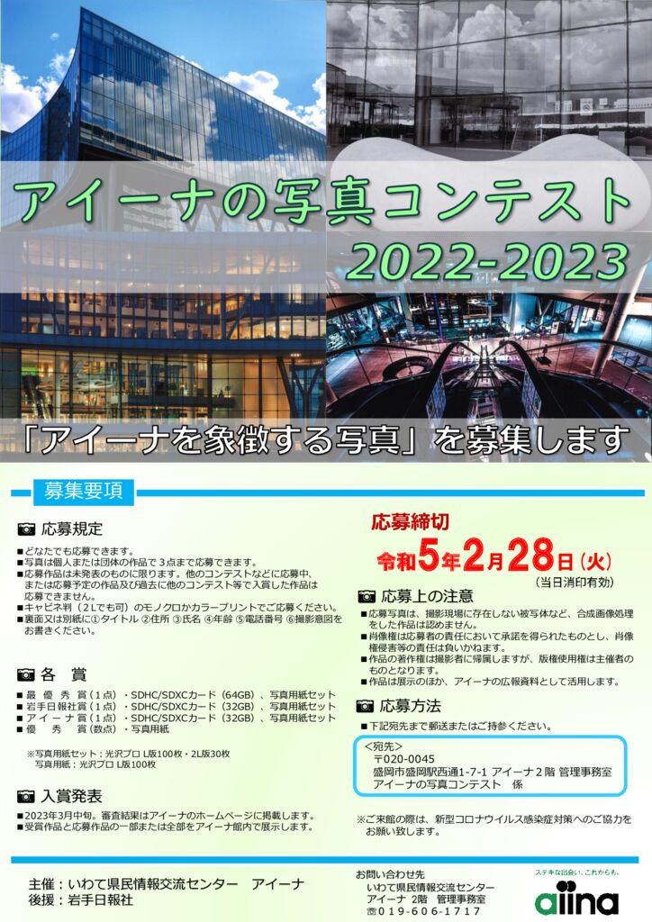 「アイーナの写真コンテスト2022-2023」作品募集中【応募締切:令和5年2月28日(火)】