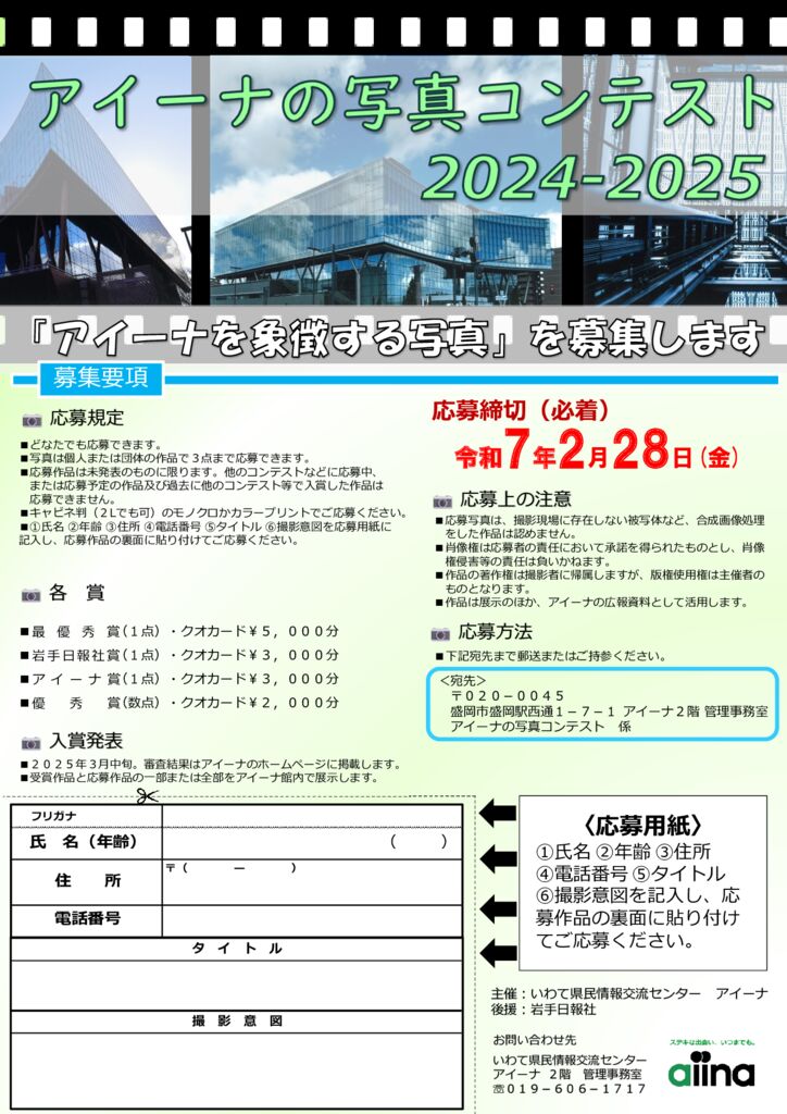 「アイーナの写真コンテスト2024-2025」作品募集中【応募締切(必着):令和7年2月28日(金)】