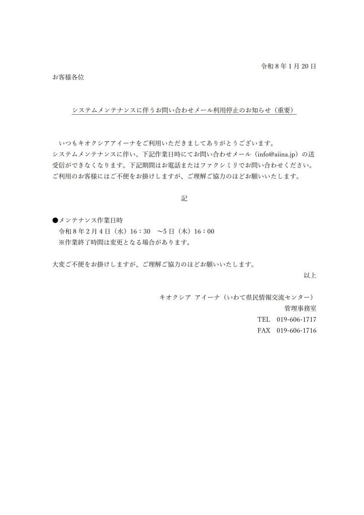 お問い合わせ先: キオクシア アイーナ管理事務室
