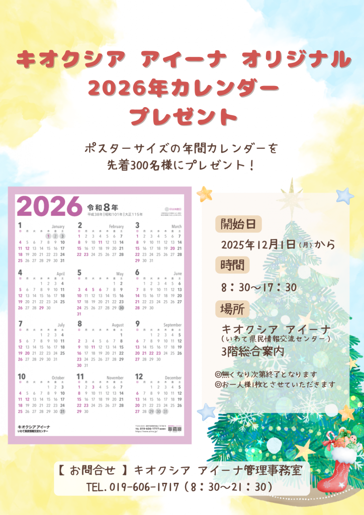 キオクシア アイーナオリジナル 2026年カレンダープレゼント(11/23掲載)