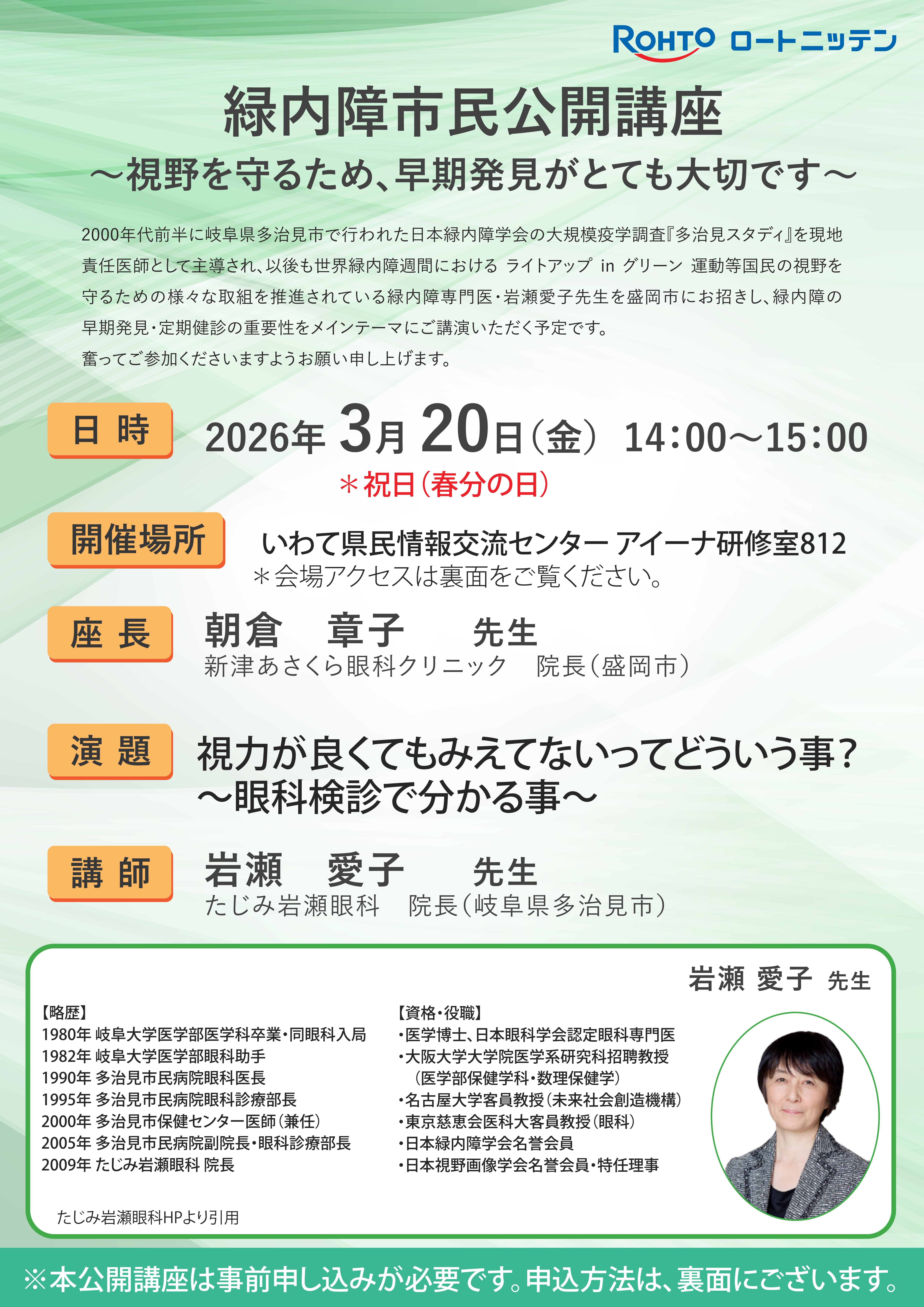 「緑内障市民公開講座~視野を守るため、早期発見がとても大切です~」